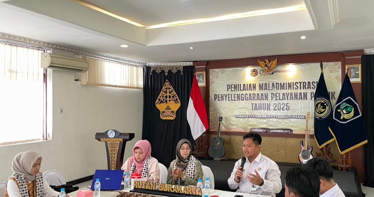 Surakarta - Rutan Kelas I Surakarta menerima kunjungan kerja dari perwakilan Ombudsman Republik Indonesia Provinsi Jawa Tengah, Selasa (11/11). Kunjungan ini dilakukan dalam rangka Penilaian Maladministrasi Penyelenggaraan Pelayanan Publik, sebagai bentuk evaluasi dan pengawasan terhadap kualitas layanan yang diberikan kepada masyarakat maupun warga binaan.