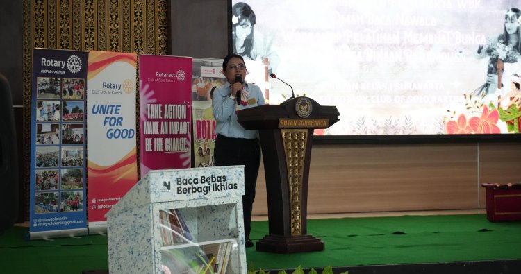 Surakarta — Rumah Tahanan Negara Kelas I Surakarta menyelenggarakan kegiatan “Penyerahan Buku, Omah Baca Nawala & Workshop Pembuatan Bunga” pada Rabu (21/01) bertempat di Aula Laras Jiwo Rutan Kelas I Surakarta. Kegiatan ini merupakan bentuk kolaborasi antara Rutan Surakarta dengan Rotary Club of Solo Kartini, Nyalanesia, dan Rotaract Solo Pakarti dalam mendukung peningkatan literasi serta pengembangan kreativitas Warga Binaan Pemasyarakatan (WBP).